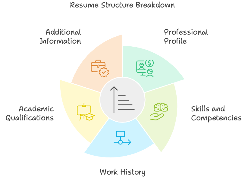 A well-structured resume improves readability for both ATS and human recruiters. Use the following sections:
