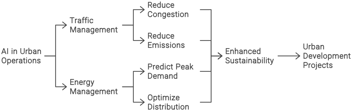 Sustainability is a central theme in modern urban planning, and AI is at the forefront of this effort. One of AI's most significant contributions to sustainability is its ability to optimize energy use across the city. By monitoring and managing energy consumption, AI helps cities reduce their carbon footprints and align with global climate goals (Schäfer et al., 2022). For example, AI can predict when energy demand will peak and adjust the distribution accordingly, minimizing waste and ensuring a stable energy supply.