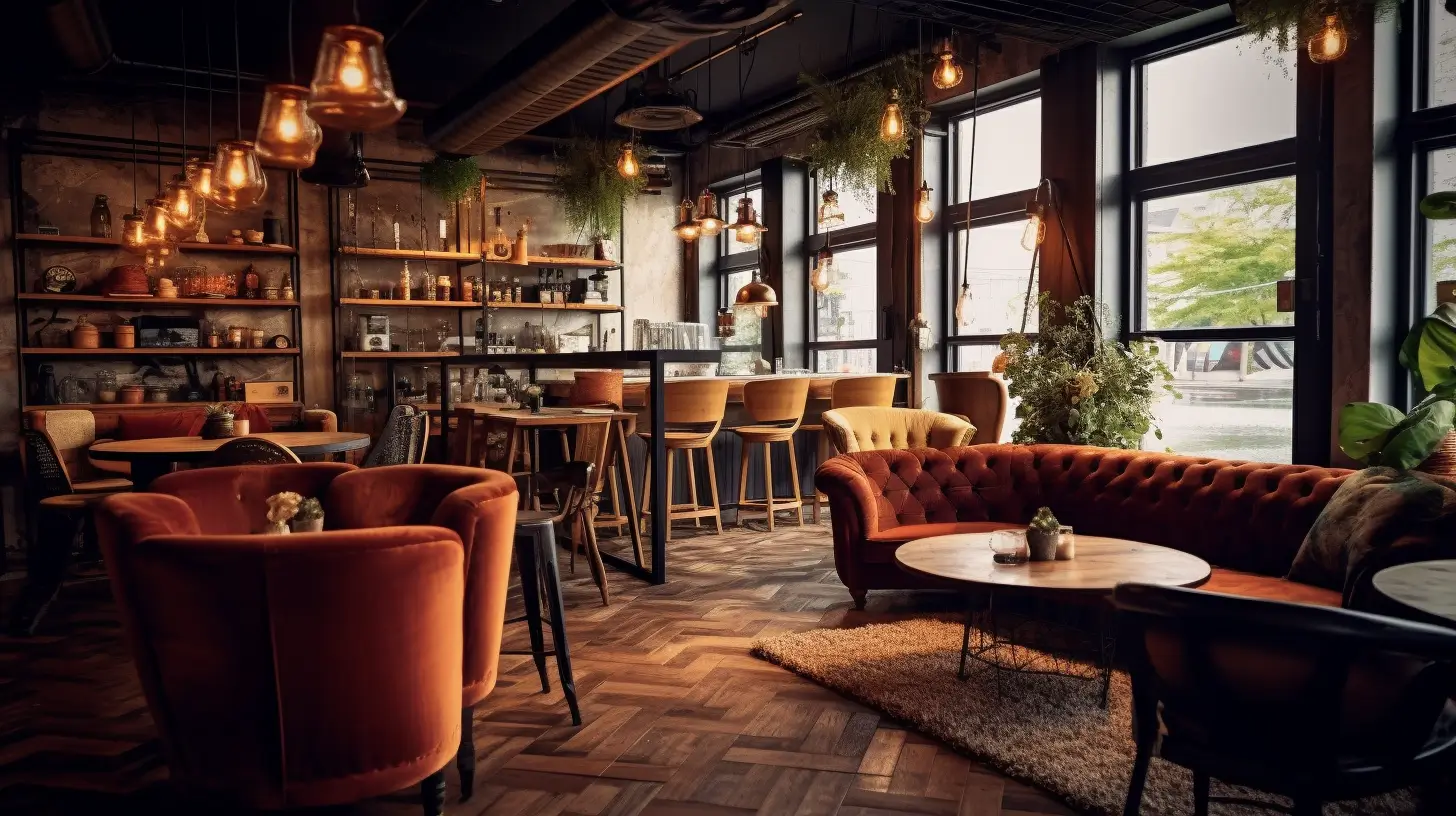 - Stylish coffee shop interior: Indicates a focus on the aesthetic aspects of the coffee shop, such as décor, color scheme, and layout that stand out.