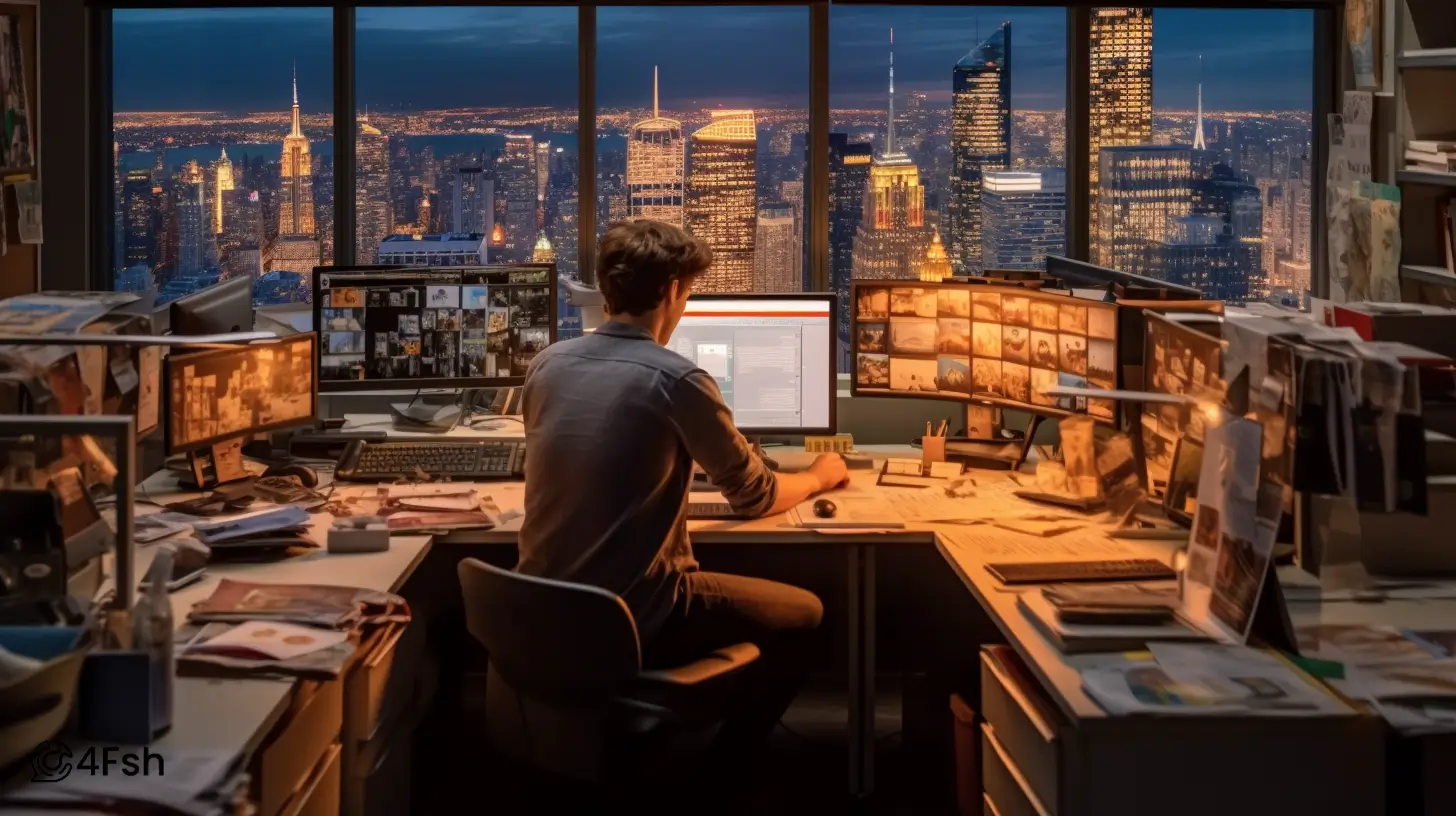 - Man engrossed in his work: Central focus on a man deeply focused, indicating a human element and a sense of immersion in tasks.
