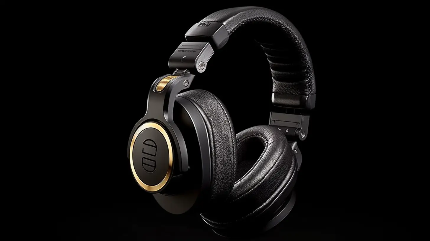 Capture the essence of the newest headphone from a renowned company, emphasizing its sleek design and superior sound quality. The image should be hyper-realistic, highly detailed, and high-resolution 16k. Use a Nikon D850 DSLR camera with a 50mm f/1.8 lens to achieve a sharp focus on the headphones. The time of day is irrelevant as the shoot will be indoors, under controlled lighting conditions. The style of the photograph should be commercial and modern, with a nod to the aesthetics of Apple product photography. Use a Kodak Portra 400 type of film to achieve vibrant colors and fine grain. Set the camera with an aperture of f/2.8, ISO 100, and shutter speed of 1/125 to capture every detail of the headphones. In post-processing, enhance the contrast and saturation to make the headphones stand out, and apply a slight vignette to draw the viewer's eye towards the product.